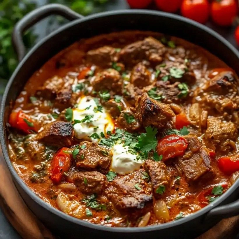 Cool the stew to room temperature, then transfer to an airtight container. Store in the refrigerator for up to 3 days. The yogurt and cream will keep the sauce creamy, so you’ll have a ready‑to‑heat meal for busy evenings.